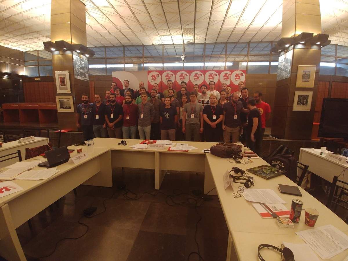 La 14ème Rencontre des organisations de jeunesse communiste européennes a été organisée par la Jeunesse Communiste de Grèce (KNE) dans le cadre du 50ème anniversaire de sa fondation ainsi que du 100ème anniversaire de la fondation du Parti Communiste de Grèce (KKE). Nous remercions la KNE d'avoir accueilli cette rencontre qui, depuis 2001, s'est tenu successivement à Madrid, Lisbonne, Athènes, Istanbul, Prague, Barcelone, Bruxelles, Francfort et Rome. La rencontre de cette année a connu la plus grande participation des organisations de jeunesse communiste jusqu'à présent, avec plus d'organisations participantes que jamais auparavant.